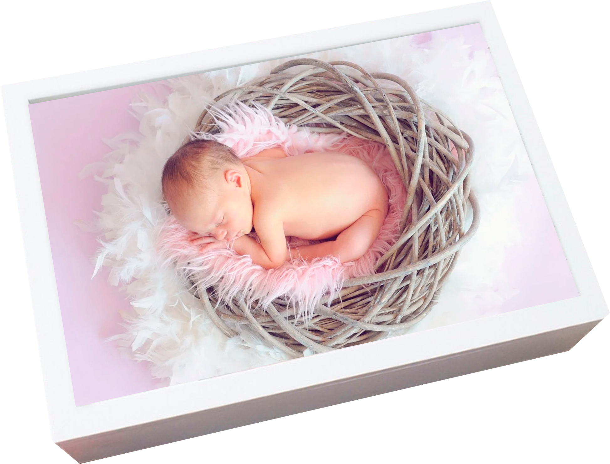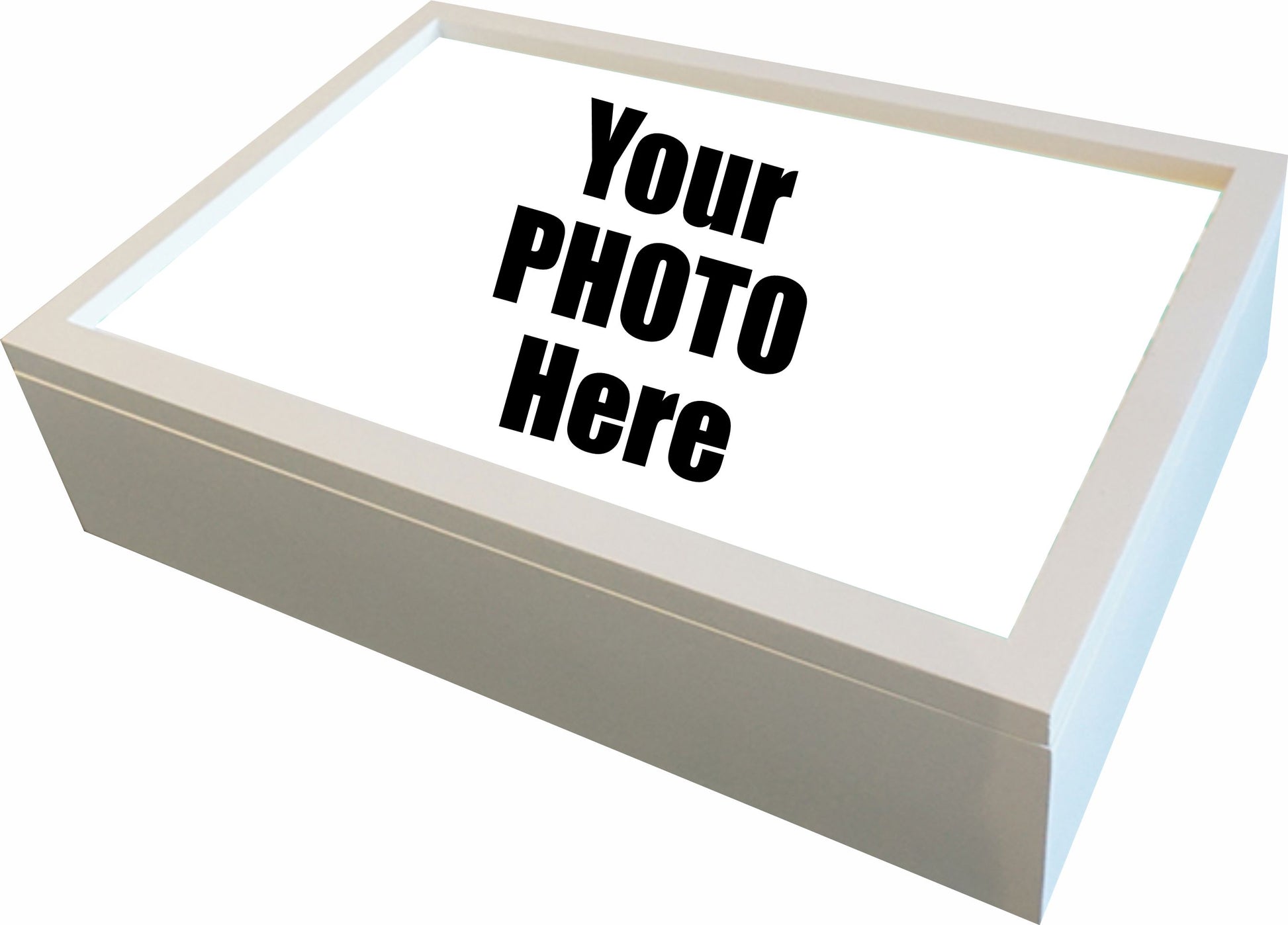 This wood keepsake box is 11.81 x 8.26 x 2.99 and can be personalized with a photo, quote, logo, or monogram. The image is sublimated onto a piece of metal and attached inside the raised frame. The image is 10.55 x 7 inches. This would make a wonderful baby, anniversary or birthday gift. Just send me your image in an email.
